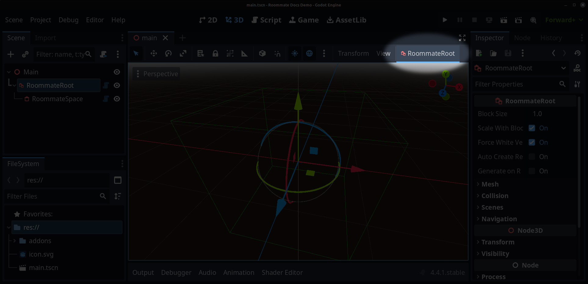 Add RoommateSpace as a child of RoommateRoot