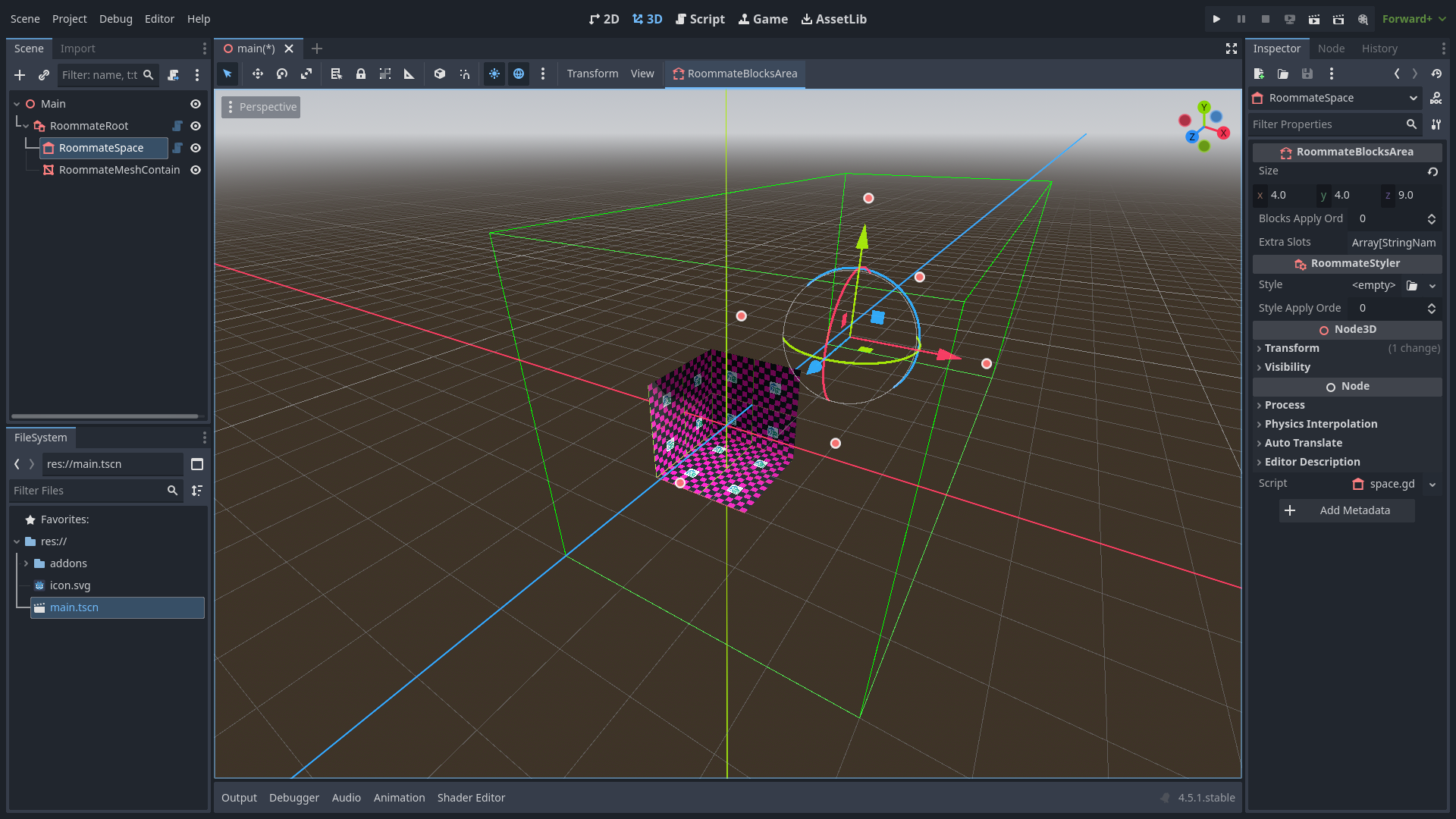You can resize RoommateSpace by pulling knob or changing size parameter in property window